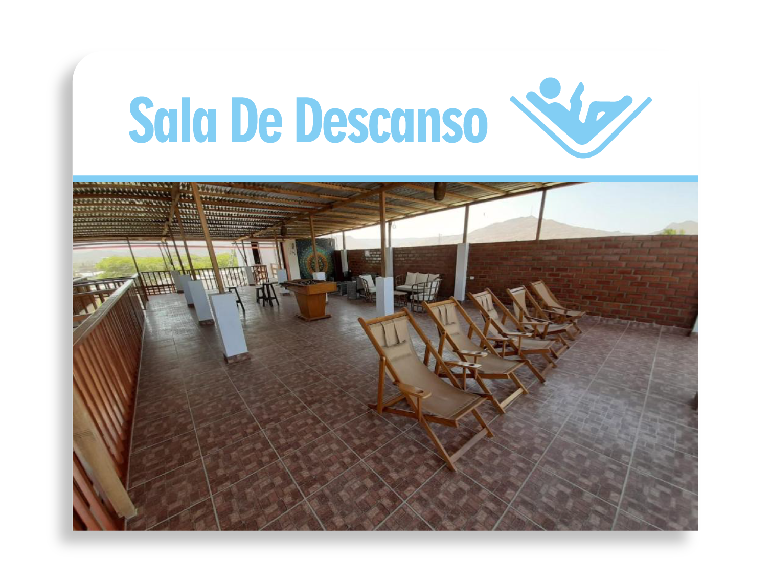 La sección Sala de Descanso fue diseñada con un enfoque en comodidad, tranquilidad y bienestar, resaltando este espacio como un valor agregado para los huéspedes.